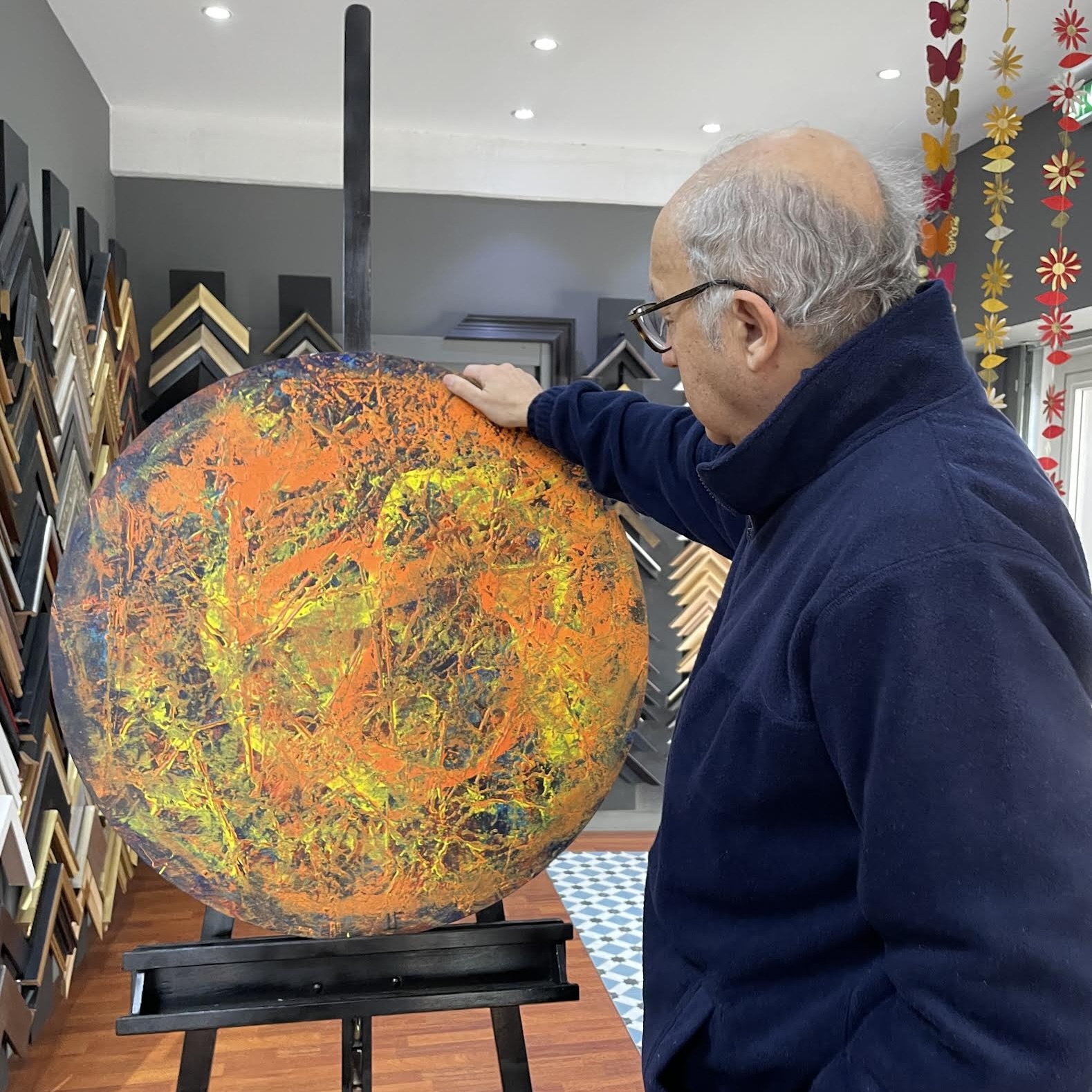 D’abord sur des petits formats, toujours à l’acrylique, puis sur des toiles de plus en plus grandes, parfois monumentales. La couleur et le mouvement sont au centre de son processus créatif.